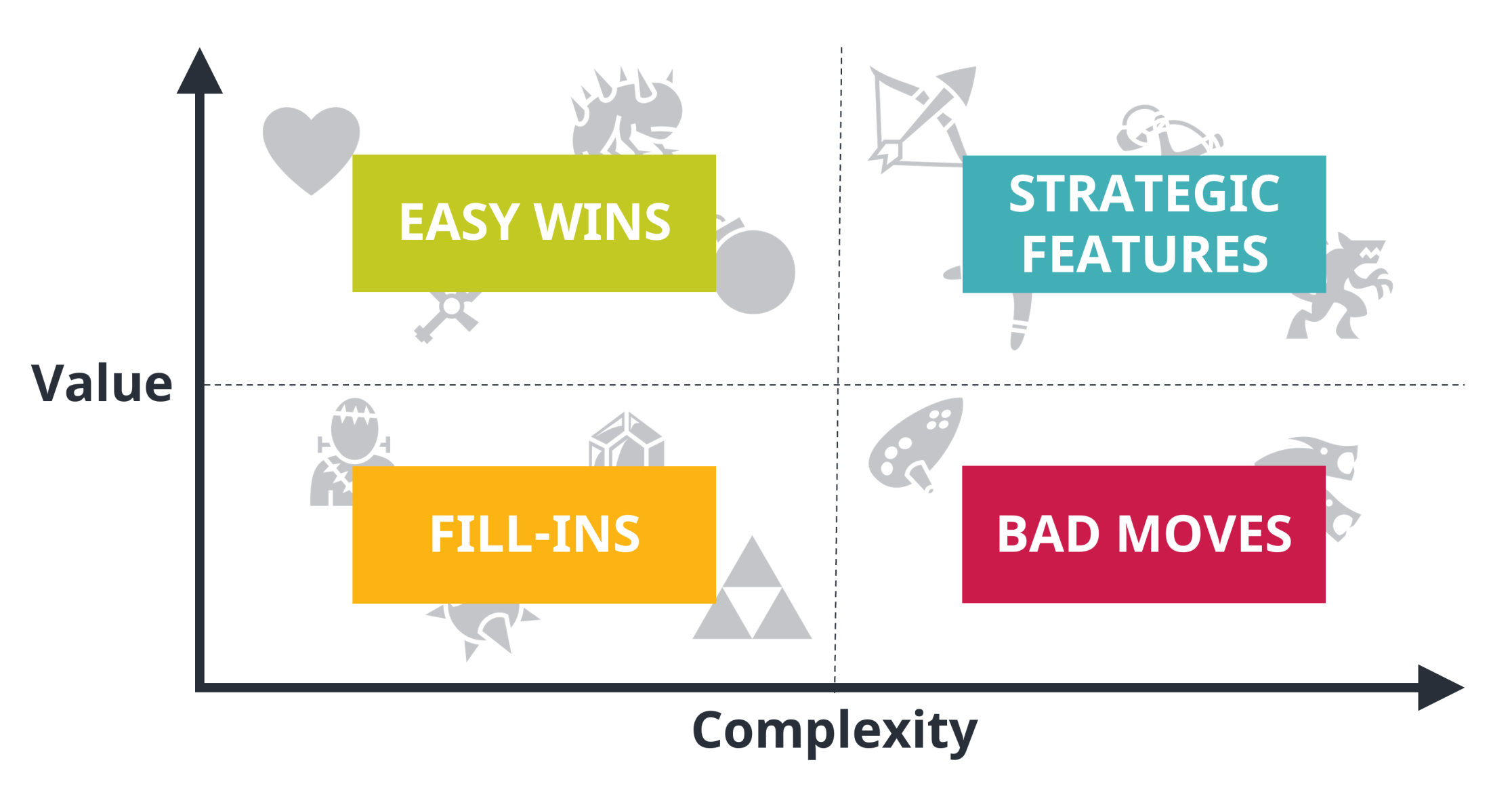 I always think about that twice before purchasing anything, so I could minimize my expenses - and save some time by reusing systems that I already know. The same goes for tools that can greatly improve your productivity. They can decrease the complexity of the strategic features enough to turn them into easy wins, and you can even consider implementing features that you would have discarded otherwise.