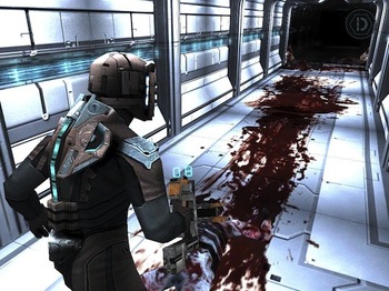Some titles (such as The Witcher 3: Wild Hunt) give the player character to follow markers that represent either footprints, or a scent trail. However, the experience remains shallow as there's little challenge in such an activity. Other titles (such as Dead Space or Skyrim) use tracks as an environmental storytelling tool. Blood trails, scorch marks, or corpses then hint unseen dangers. |