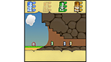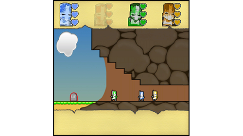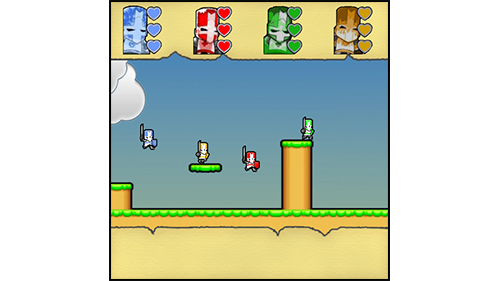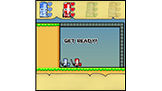 The character ahead forces the camera scrolling to the right, and eliminates any competitors knocked off the left boundary.