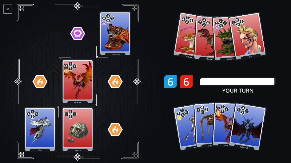 iframes are not supported by your browser. GENRE: Collectible Card Game PLATFORM: PC ENGINE: Unity 3D CONCEPT: Simple remake of the eponymous card game from Final Fantasy VIII and Final Fantasy XIV. The gameplay was elegant and simple enough to focus on the multiplayer functionalities, the card manipulations, and the implementation of an AI opponent