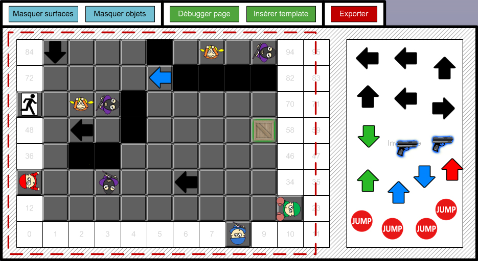 Few here examples of level editors that I entirely scripted in Microsoft Visio. Both have been created to facilitate the design of 2D levels for a puzzle game, and a remake of the original Zelda. They support basic macros adjusting the positions of gameplay elements on the grid, displaying/hiding layers, creating new templates - but also more complex macros highlighting any kinds of errors, and exporting the suite of levels as XML files.