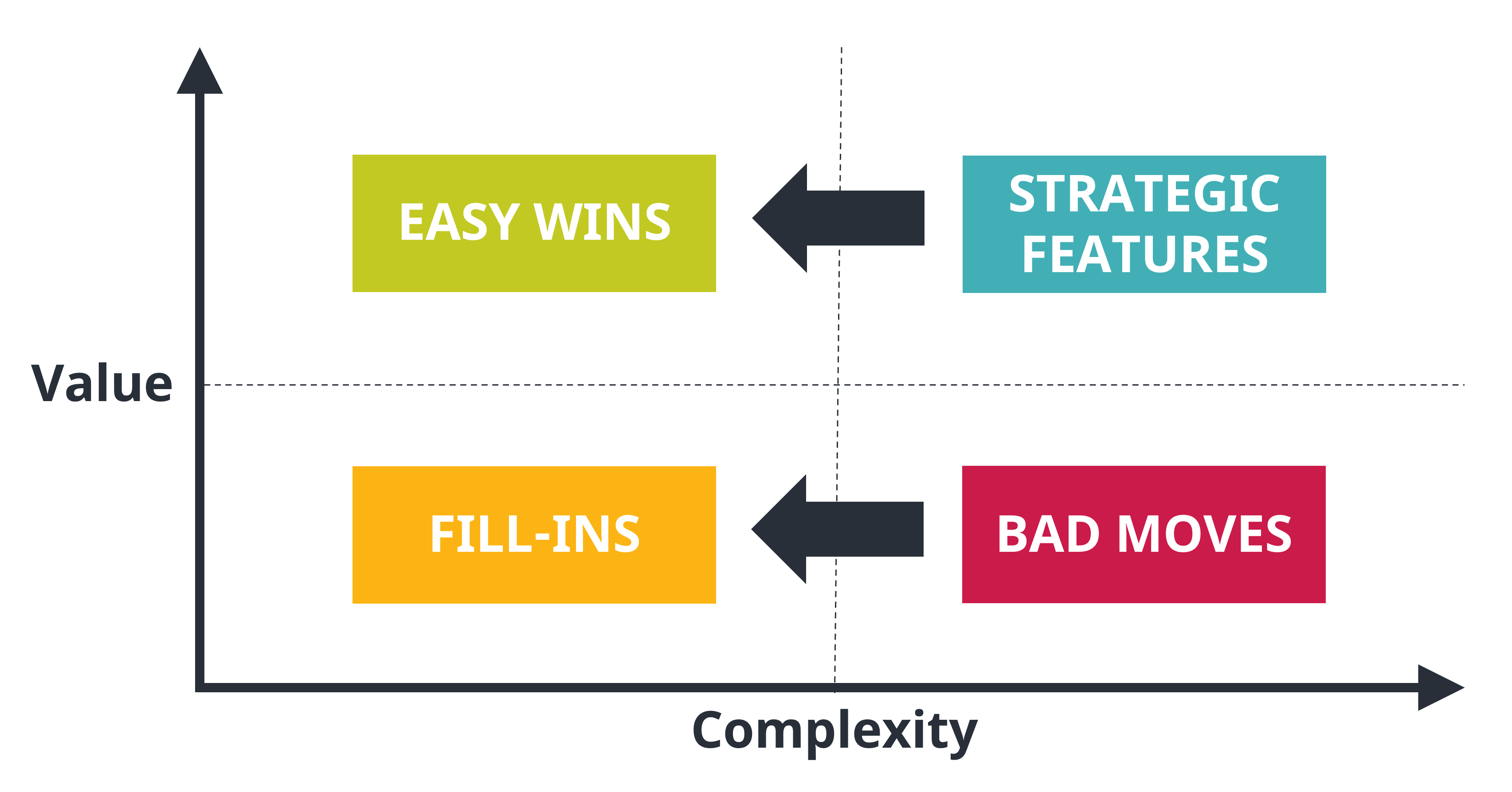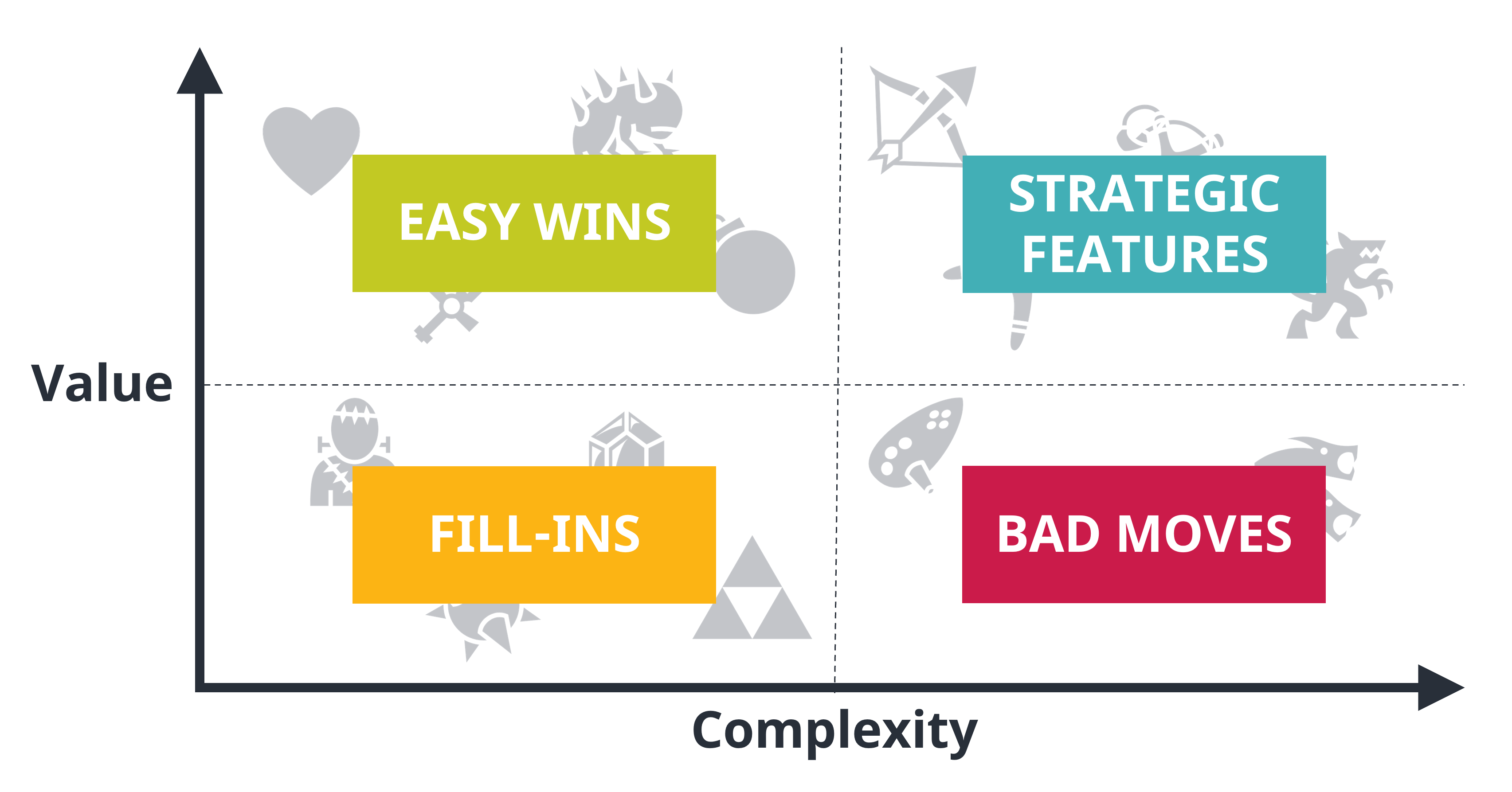 I always think about that twice before purchasing anything, so I could minimize my expenses - and save some time by reusing systems that I already know. The same goes for tools that can greatly improve your productivity. They can decrease the complexity of the strategic features enough to turn them into easy wins, and you can even consider implementing features that you would have discarded otherwise. For great examples, have a look at the wishlist "useful tools" at the end of the article.