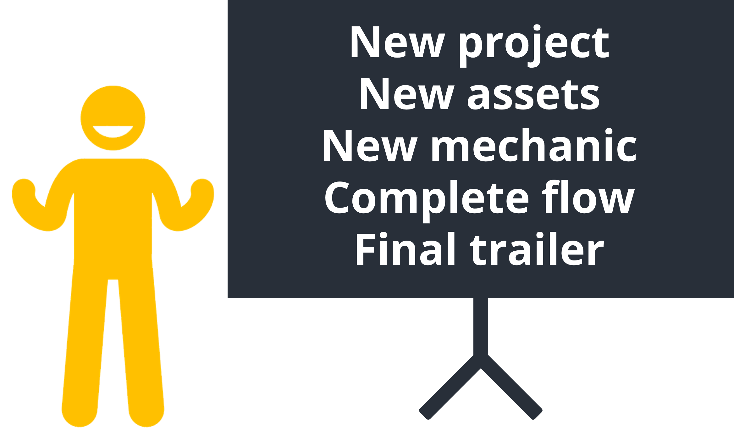 My second advice is to use as many time-savers as you can. Of couse, you will reach MVP faster and will less likely suffer from a fatigue. However, it goes beyond this point: you should have fun and focus on the creation of the gameplay itself – nothing else is worth your time. Yet, tasks can sometimes be repetitive or complex. They can affect your morale, and you shouldn't feel like "cheating" if you find ways to skip them.
