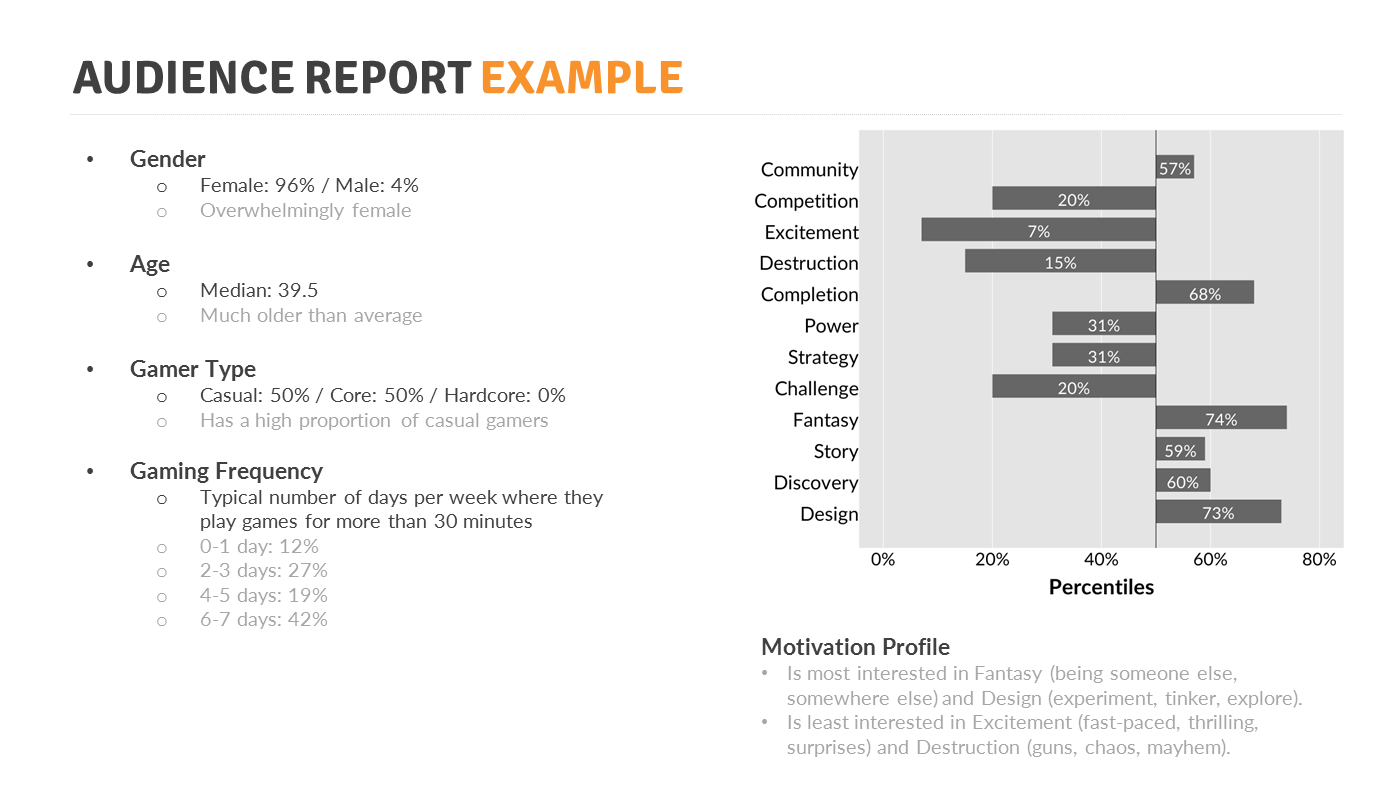 The players' endorsement and a high retention are the key to sustain a healthy community - especially nowadays where games as a services (GAAS) have become a standard: selling copies isn't an end per se, it's just the first step to win the players' loyalty. However, not every developers can afford a department dedicated full-time to the customer market knowledge. I encourage them to look for alternative solutions to retrieve players data though third parties such as Quantic Foundry: